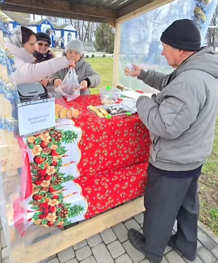 «Поки що у нас виставляється одна ятка, але на більші свята плануємо робити більше. Тут різні смаколики - зефір, маршмеллоу, пиріжки, тортики та інше. Є орієнтовна сума донату, за яку можна взяти ці смаколики, а кошти залишити для допомоги нашим захисникам», - зазначив священник.