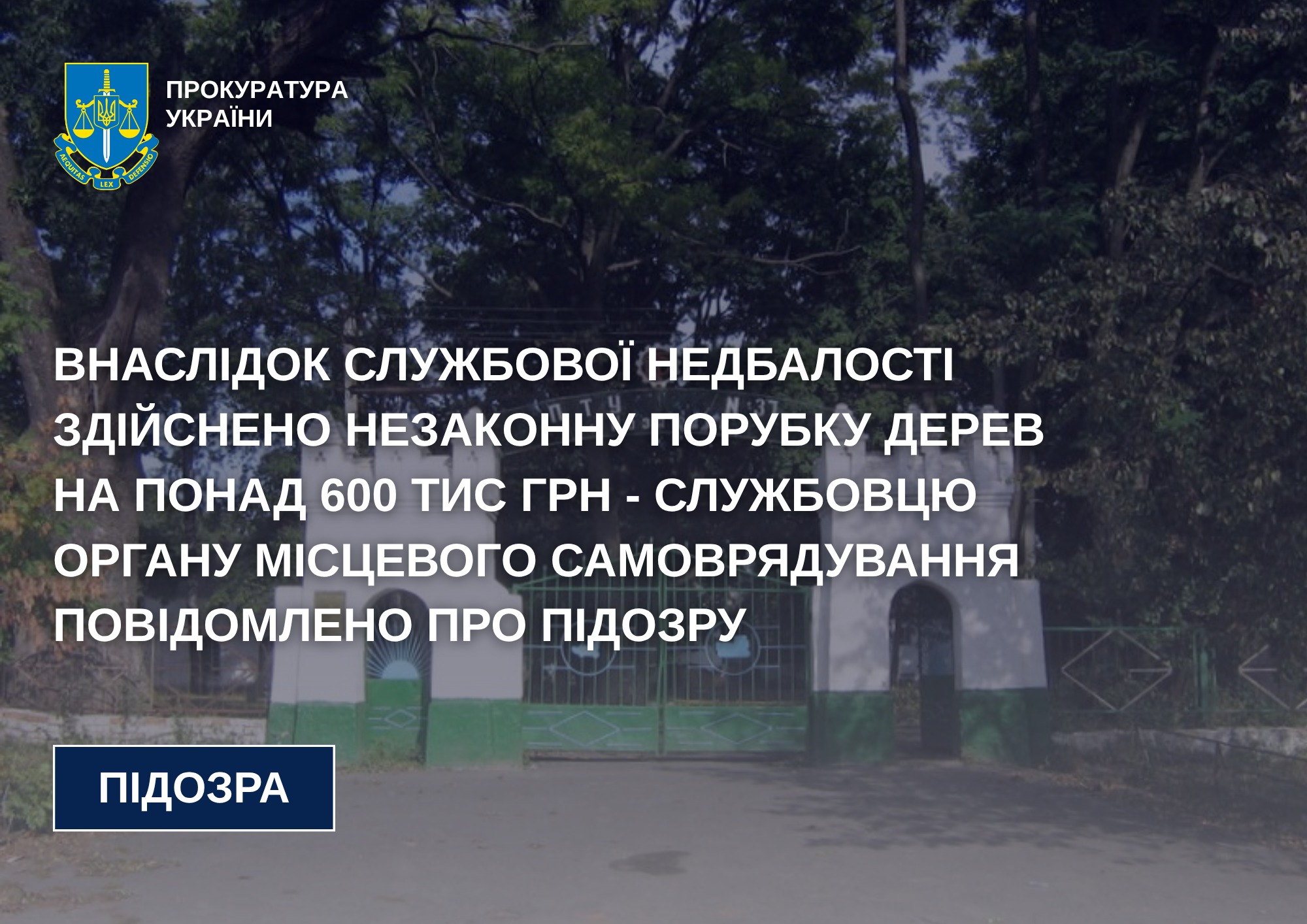 За процесуального керівництва прокурорів Звенигородської окружної прокуратури повідомлено про підозру одному із заступників органу місцевого самоврядування за фактом службової недбалості, що спричинило тяжкі наслідки. За даними слідства, з листопада по грудень 2021 року підозрюваний не забезпечив належний контроль за дотриманням правил охорони навколишнього природного середовища на території парку-пам’ятки садово-паркового мистецтва «Козачанський парк», що розташований в...