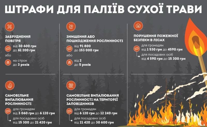 Вогнеборці наголошують, що палії несуть серйозну відповідальність перед законом. Українське законодавство передбачає адміністративну відповідальність за самовільне випалювання сухої рослинності.