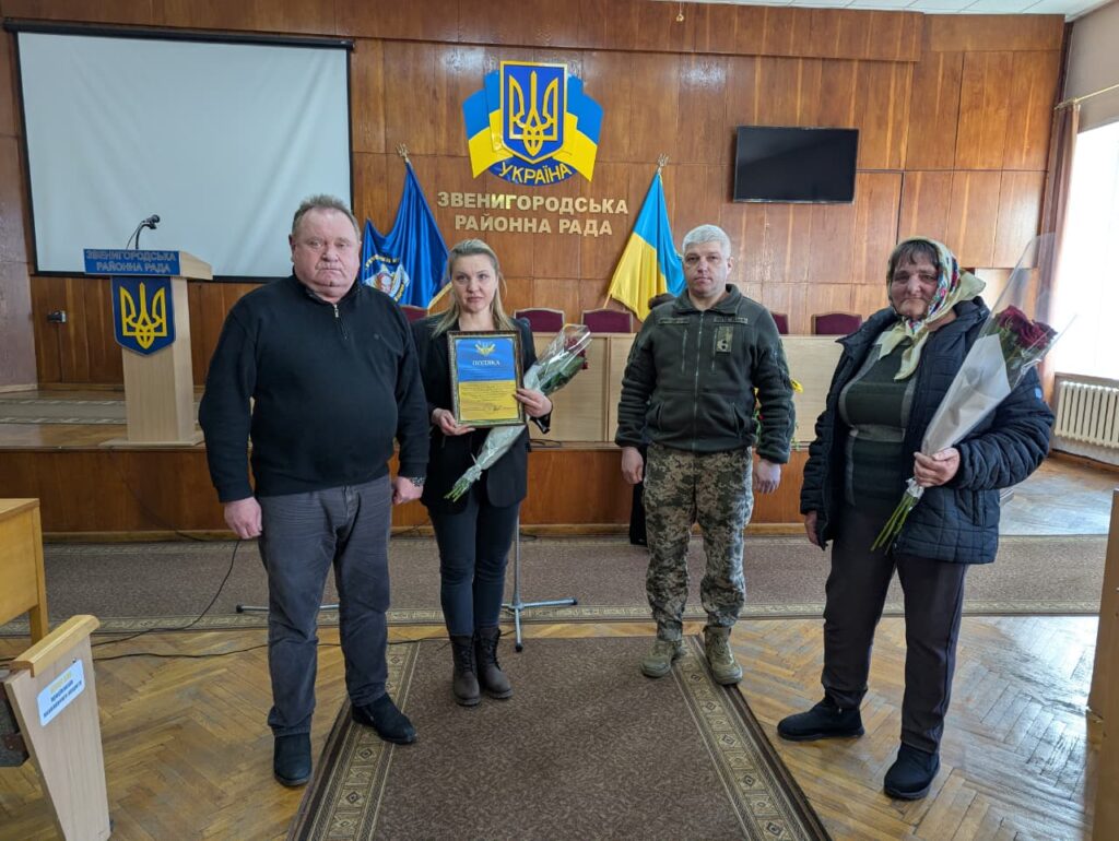 У Звенигородській районній військовій адміністрації під час урочистого заходу відзначили двох військовослужбовців із громад району — старшого сержанта Михайла Шпільку з села Лисича Балка Калинопільської громади та солдата Євгенія Гнелицького із села Чичиркозівка Багачевської громади.