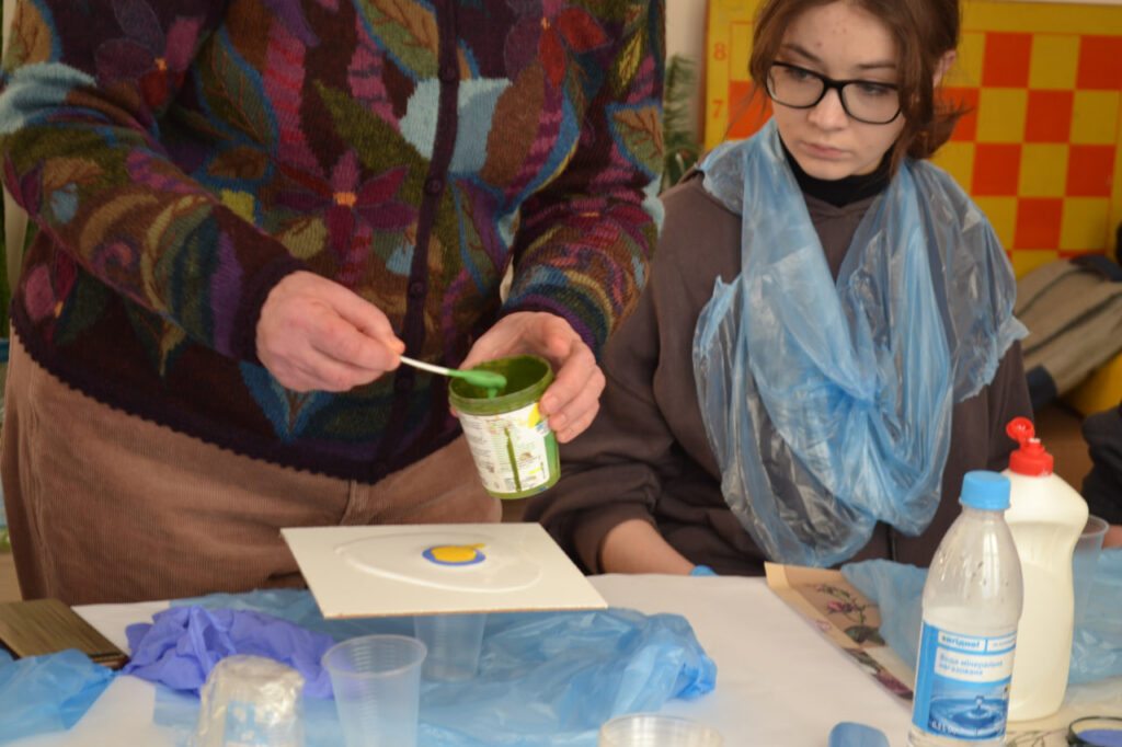 Під час майстер-класу учасники знайомилися з основами цієї техніки: працювали з кольорами, визначали лінії, змішували фарби до рідкої консистенції, експериментували з текстурами та формами.