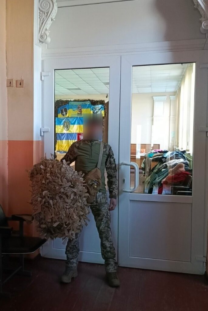 Окремо Центр передав маскувальну сітку для підрозділу протиповітряної оборони, де служить земляк. Сітку виготовили працівниці філії села Соболівка КЗ «Центр культури та дозвілля».