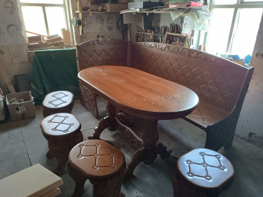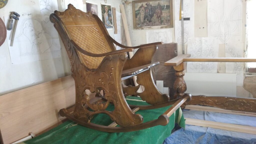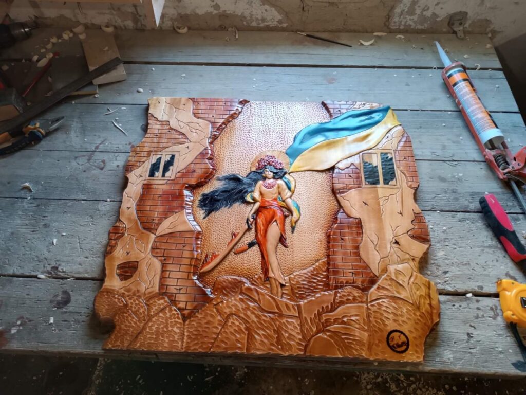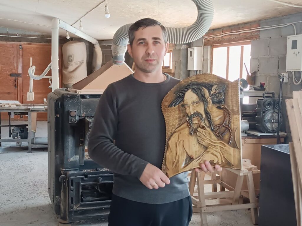 Сьогодні він виготовляє меблі - ліжка, тумбочки, столи, шафи, різьблені рельєфні панно та картини, нарди, сувеніри, шеврони, працює з індивідуальними замовленнями. Особливе місце у його роботі займають вироби для військових і ветеранів.