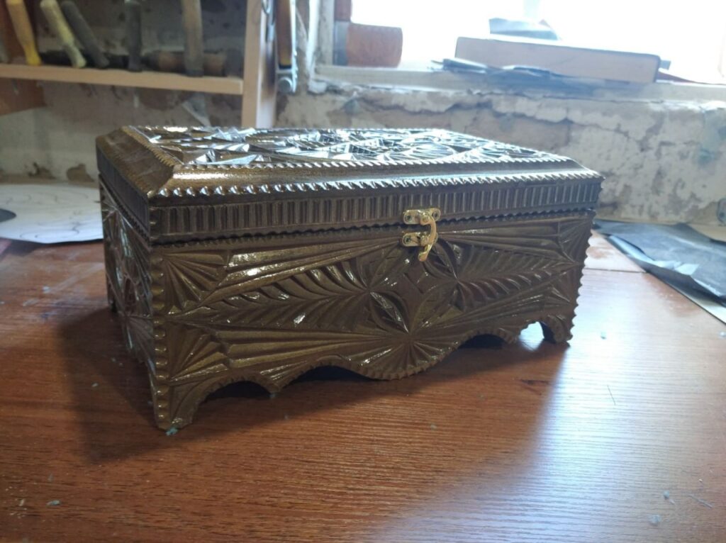 «Може, це доля. Дивився, як хлопці працюють, і якось саме потягнуло. Хотілося навчитися робити таке ж своїми руками. Потім трапився один чоловік, який робив скриньки ручної роботи. Я не бачив процесу, але він мені подарував одну готову. Вона в мене зберігалася. А потім я по ній сам зробив різці і зробив ще одну таку ж - меншу. Так усе й почалося», - згадує Віктор.