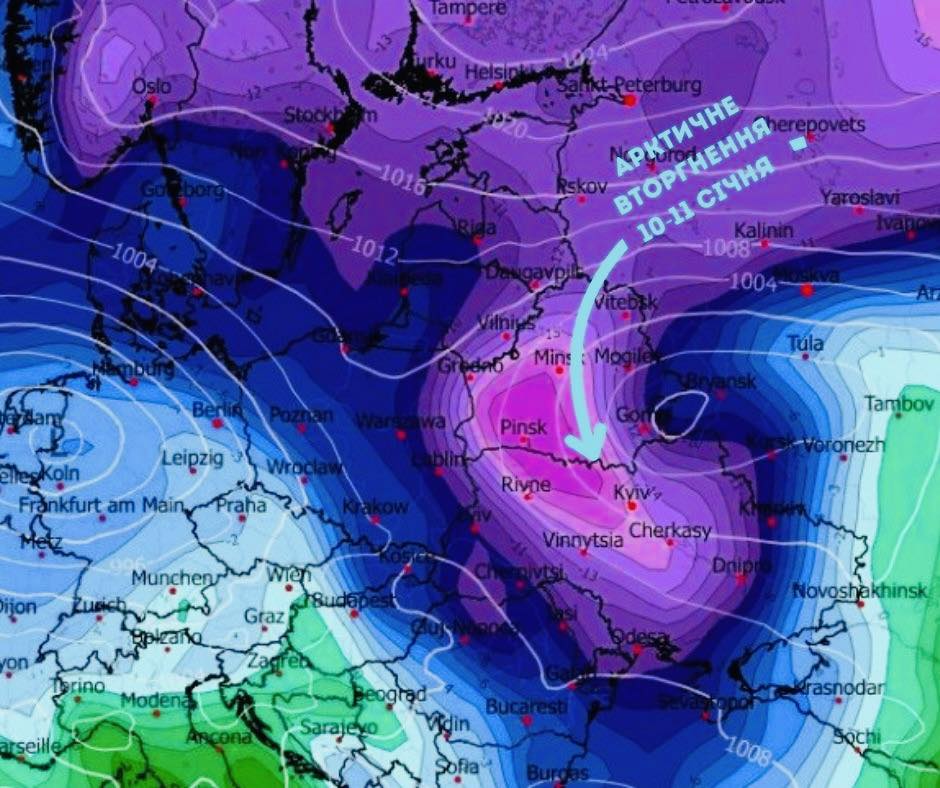 10-11 січня, прогнозується значне зниження температури повітря; вночі 15-20° морозу, місцями 23° морозу, вдень 9-14° морозу. На дорогах ожеледиця.