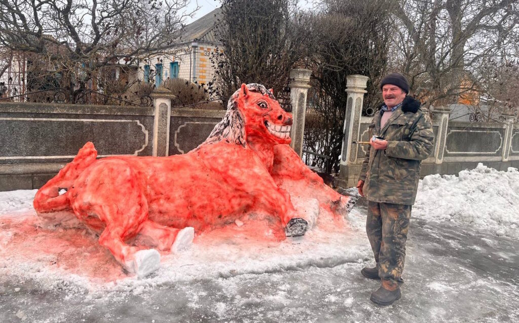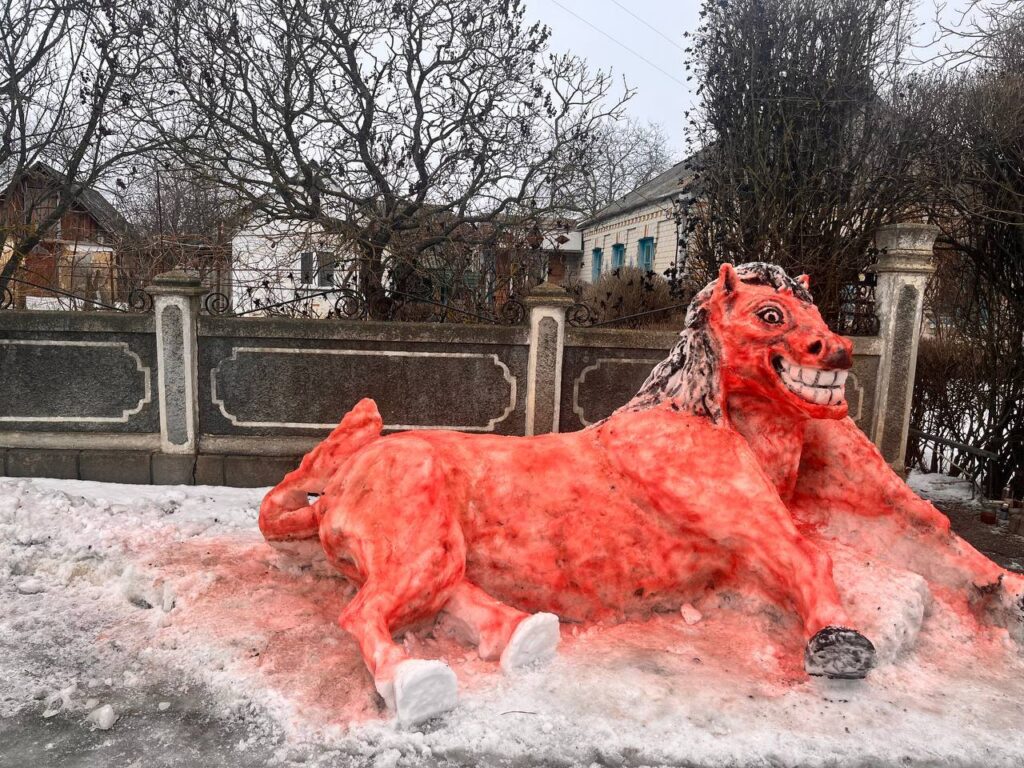 У селі Шевченкове, що на Звенигородщині, місцевий житель Віктор Голуб зі снігу виліпив коня у повний розмір. Скульптуру він розфарбував у червоний колір, пише Про Все.