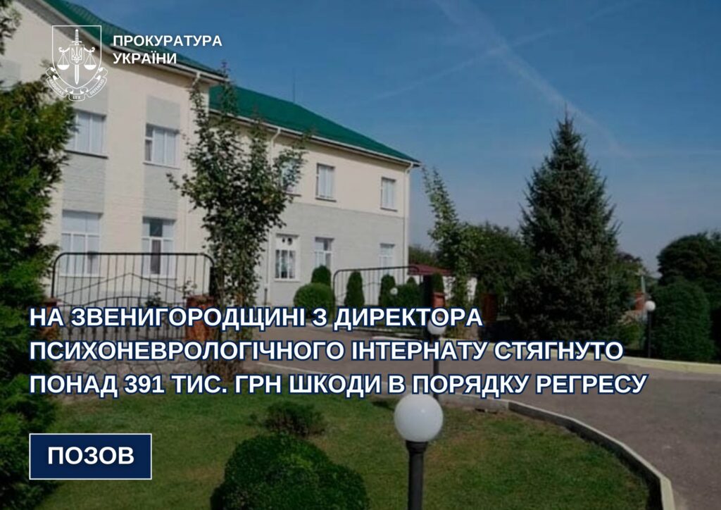 На Звенигородщині з директора психоневрологічного інтернату, який незаконно звільнив бухгалтера закладу, стягнуто понад 391 тис. грн шкоди в порядку регресу.