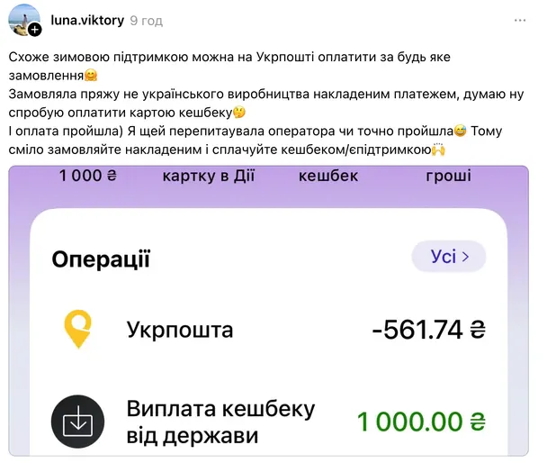 Одна з користувачок Мережі розповіла, що на відділенні «Укрпошти» мала отримати посилку з післяплатою, а тому вирішила спробувати сплатити її карткою «Національний кешбек». Оплата відбулася успішно.