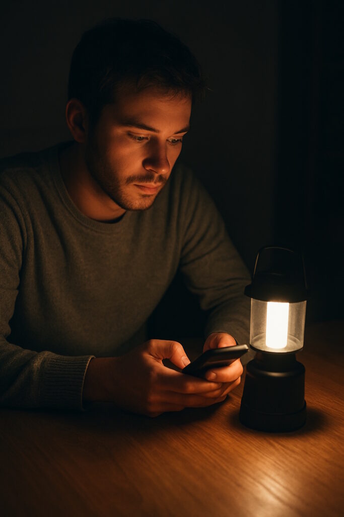 Чоловік пояснює, що його родина обходиться ліхтариками та павербанками.