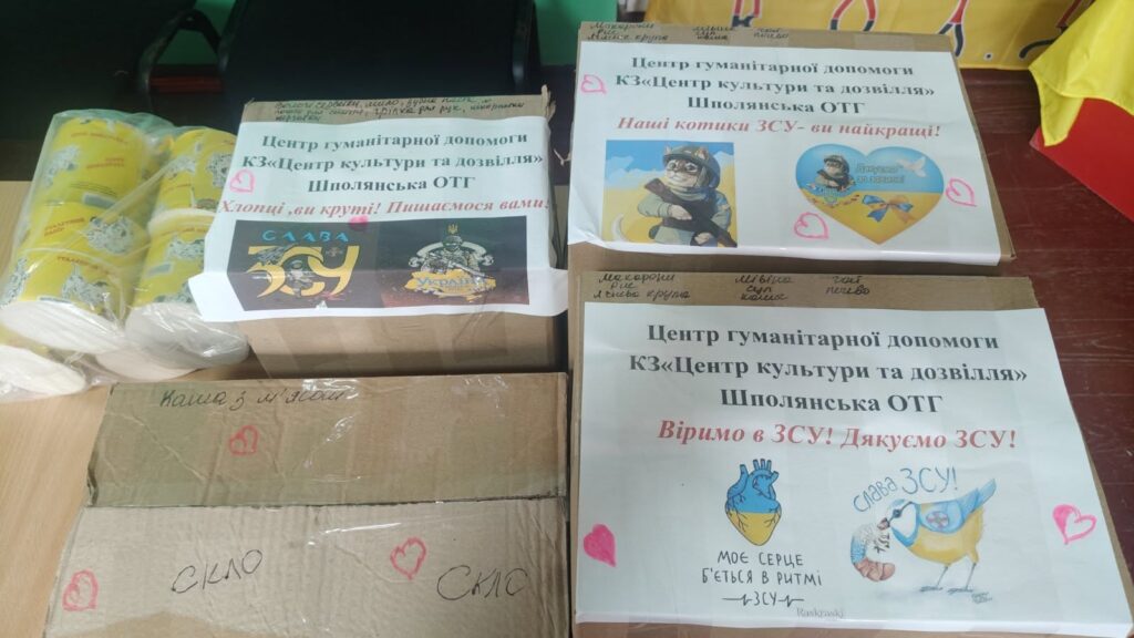 До формування вантажу долучилися жителі громади та працівниці філій КЗ «Центр культури та дозвілля». Зокрема, з Кримок передали плетені килимки для сидіння, в’язані шкарпетки, сало для коптіння, яке підготували місцеві жителі, а також вареники та соління. Центр гуманітарної допомоги Шполянської міської ради ОТГ надав чай, каву, крупи, макаронні вироби, засоби гігієни, шкарпетки, дитячі обереги та консервовану кашу з м’ясом. З філії в Буртах передали окопні свічки, а жителі Мар’янівки підготували продукти швидкого приготування, печиво, грілки, господарські товари та засоби гігієни. Працівниці філії села Журавка виготовили плетені килимки для сидіння.