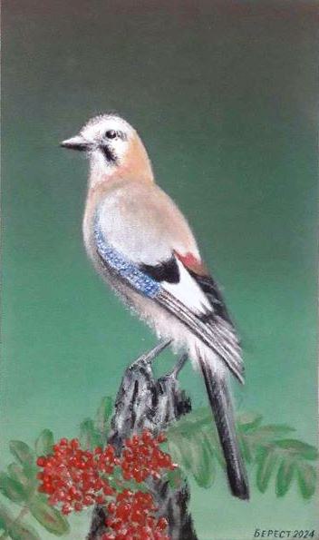 «Я назбирав підбірку - намалював картину “Сойка». Це гарна пташка, має різні кольори. Планую зробити невеличку серію - невеликі картинки з різними птахами».