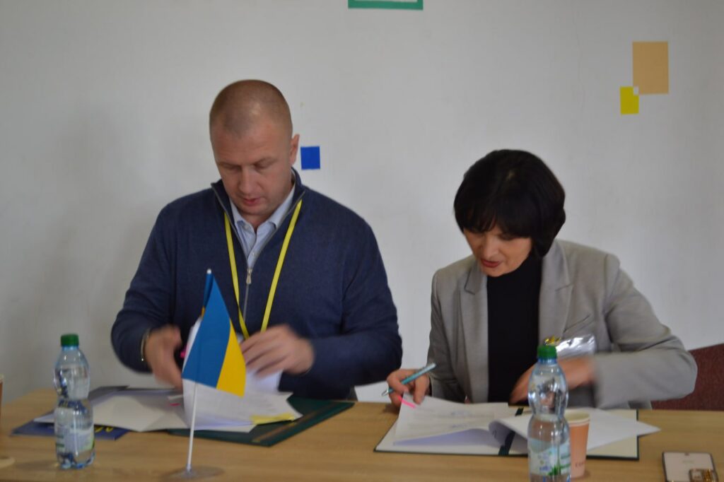 Меморандум підписали заступник міністра молоді та спорту України, засновник проєкту “Шлях чемпіонів” Олексій Нікітенко та сільський голова Матусівської громади Леся Шаповал.