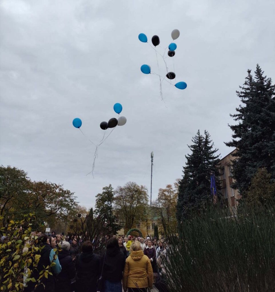 На гілках інсталяції розміщені іменні листочки. Під час відкриття присутні відпустили в небо синьо-чорні кульки та пов’язали на дерево синьо-жовті стрічки.