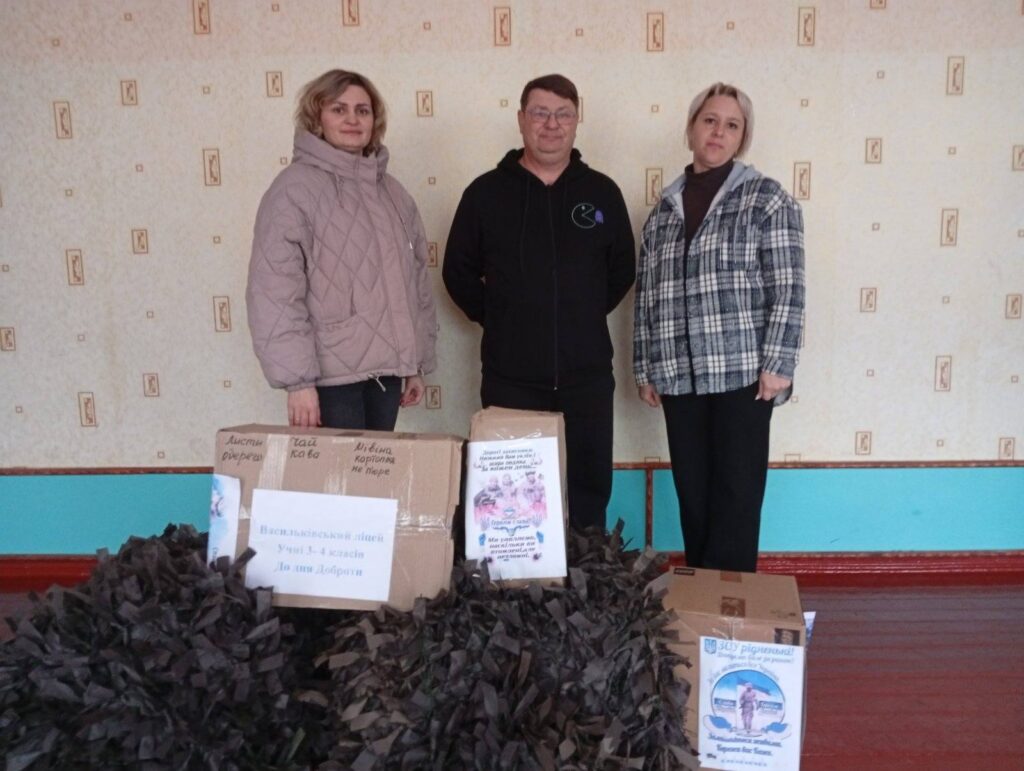 До ініціативи долучився й Васильківський ліцей: працівники закладу підготували ще дві сітки, а учні 3–4 класів разом із родинами зібрали для бійців смаколики та теплі речі.