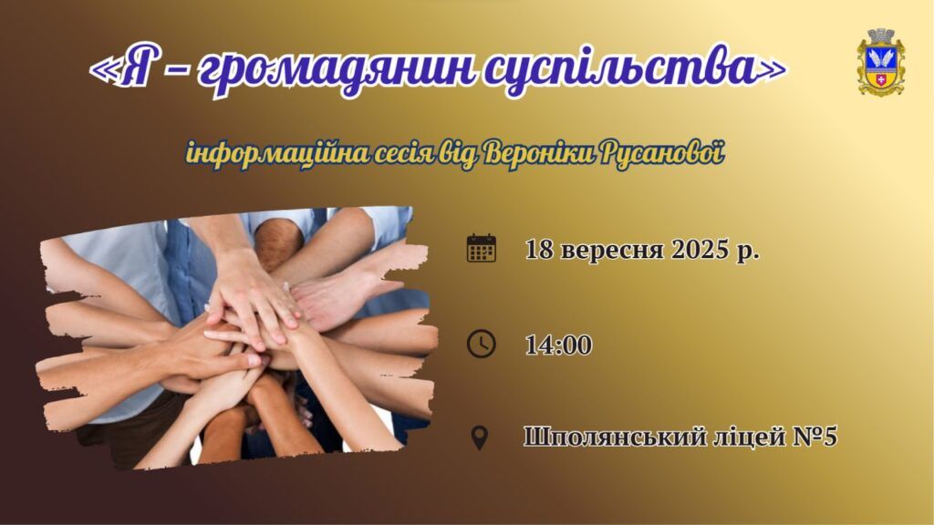 18 вересня о 14:00 у Шполянському ліцеї №5 відбудеться інформаційна сесія «Я — громадянин суспільства».