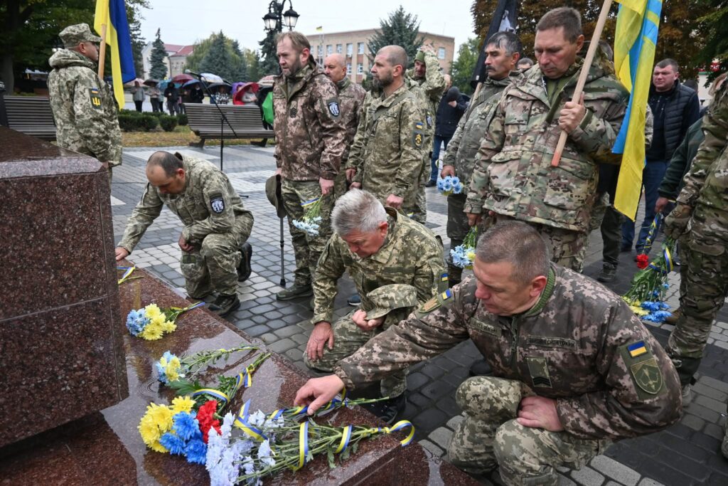Присутні вшанували хвилиною мовчання пам'ять полеглих воїнів, поклали квіти до пам'ятного знака, Стіни пам'яті та пам'ятного місця Героям Небесної Сотні.