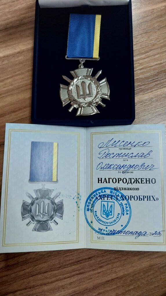 Під час нещодавнього перебування у Шполі Ростислав отримав від міської влади відзнаку «Хрест Хоробрих» як символ визнання незламності й подяки за службу.