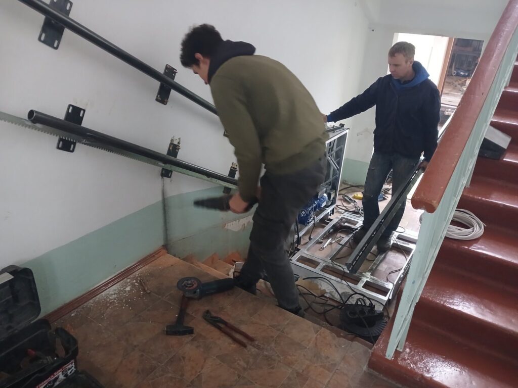 Платформа кріпиться до стіни на сходовій клітці та розкладається за потреби натисканням кнопки. Система обладнана джерелом безперебійного живлення, що забезпечує безпечне завершення руху навіть у разі відключення електроенергії.