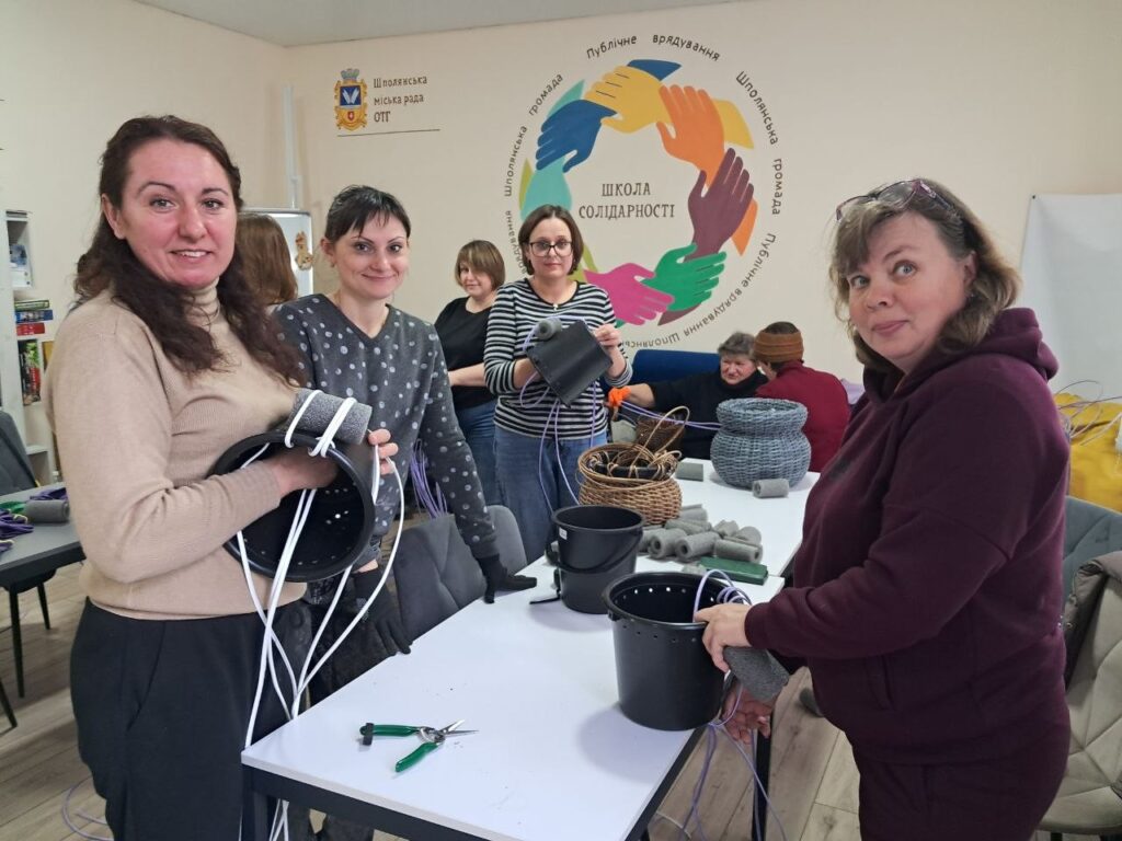 Наставницею для учасників знову стала майстриня-волонтерка зі Шполи Євгенія Узюмова. Для заняття заздалегідь підготували ротанг і необхідні матеріали, а під керівництвом майстрині учасниці опановували техніку плетіння та створювали декоративні кашпо.