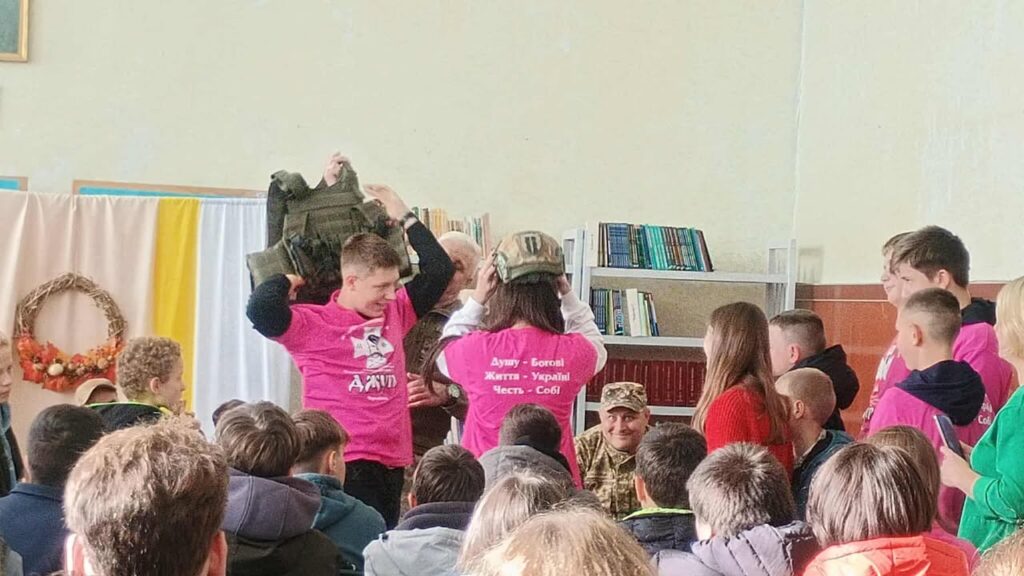 До школярів завітали голова ветеранської спілки «Сила Звенигородщини» Олег Єременко та його побратими: Олексій Микитенко, Федір Кузьменко, Дмитро Павленко, Микола Гаркавенко та Дмитро Самборський. Вони розповіли про будні на фронті, продемонстрували тактичне спорядження та засоби захисту, якими користуються українські захисники.