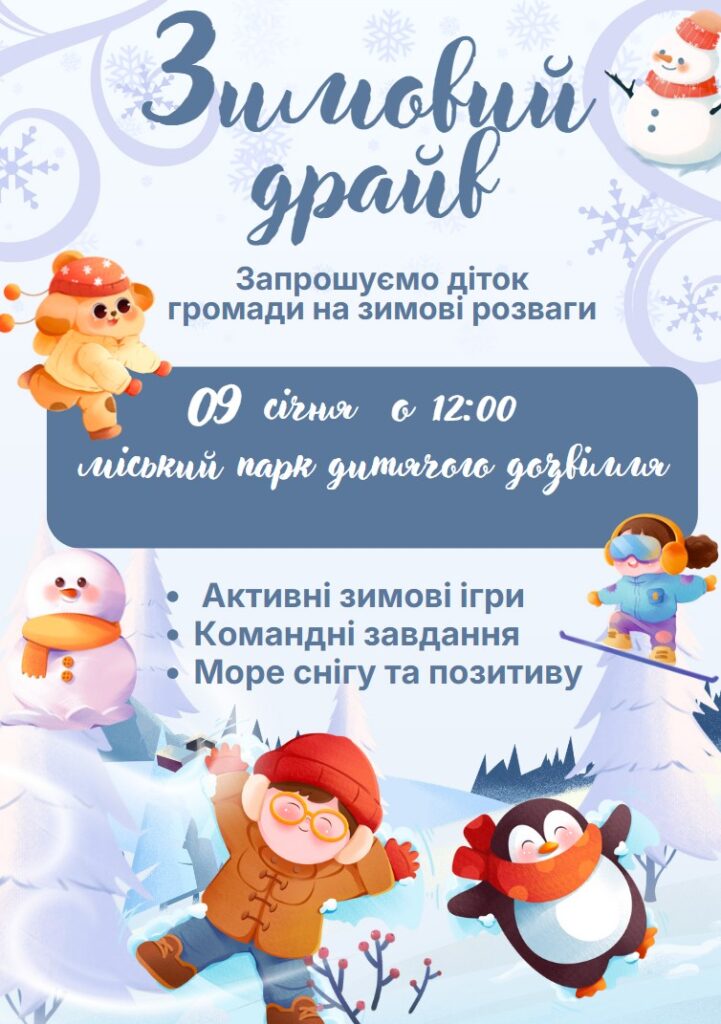 У Шполі для дітей громади організовують зимовий розважальний захід. Сьогодні, 9 січня, о 12:00 у міському парку дитячого дозвілля відбудеться подія під назвою «Зимовий драйв».